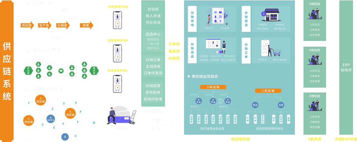 连接城市产业互联网和营销互联网的供需两端,撮合电商平台和供应链平台,让消费者可以有更多的产品选择,从中挑选最优质的产品与服务;也让商家(平台)可以快捷为自己的用户提供多样化产品,同时提高同行竞争壁垒;同时让产品供应链有大量的电商平台变现途径;最后也更好的让工厂/品牌方消灭库存,一举四得!