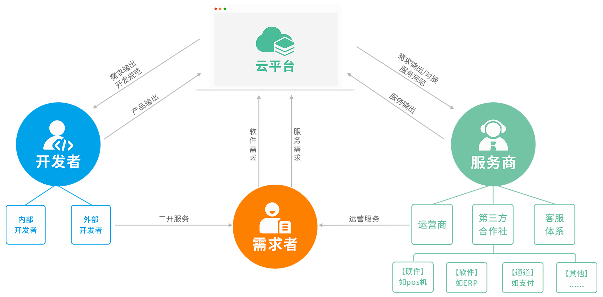开放平台面向开发合作者,共享全国渠道体系,资源整合,合作共赢,双向提高平台、中小开发企业核心竞争力。