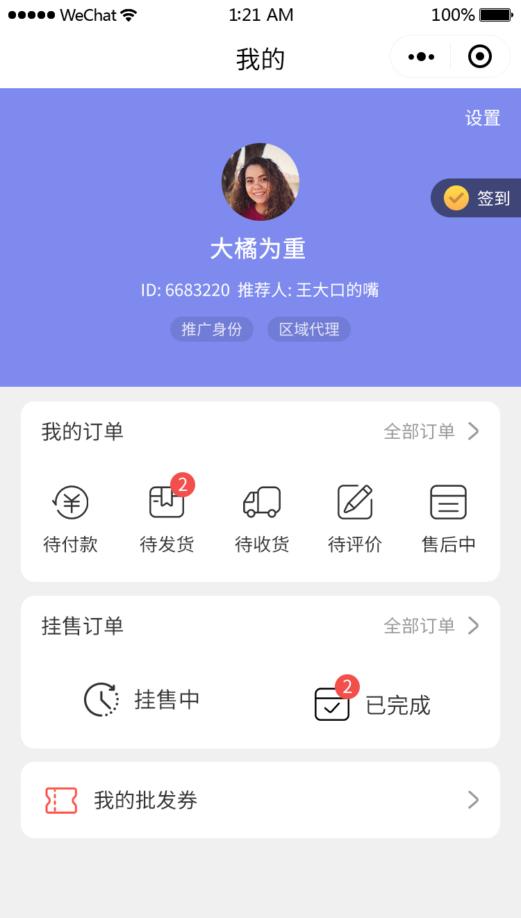 平台可按天限制用户在会员区、抢购区购买商品的次数与数量。
