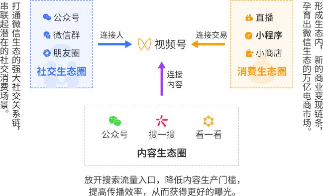 打通三大生态,相互链接导流,形成以视频号为核心更强大的生态体系,为短视频行业带来新一波的红利。
